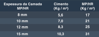 A espessura do revestimento segue uma tabela previamente determinada levando-se em conta o tipo de solicitação a que o piso será submetido: